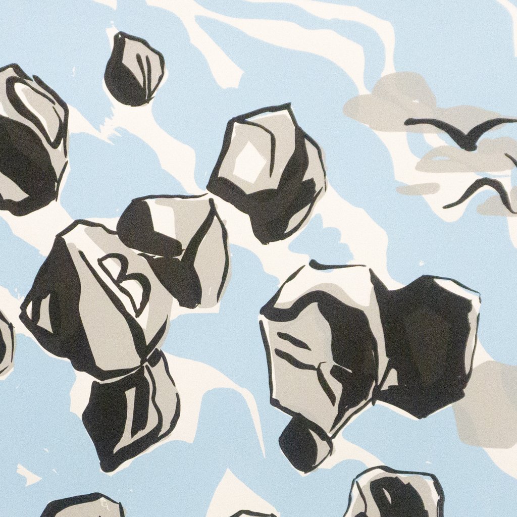 This silkscreen print can also be purchased framed. We offer a high-quality frame with a black border measuring 51.5 × 72.5 cm, which gives it its final look and makes it ready to hang on the wall.
