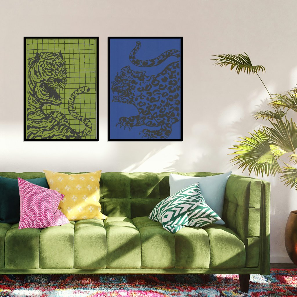 Telegraphic. You can have a unique piece of art with real artistic value in your home. Laura Limbourg's serigraph with a tiger motif reflects the artist's experience of visiting Southeast Asia. The colours, together with the primitivised execution, embody the spirit of Asian countries and refer to the strong visual tradition there. The work is part of a limited series of prints created during the months Laura Limbourg spent in the USA. Thus, the speed at which the USA lives has functioned here as a kind of counterpoint to Laura's Asian experience.