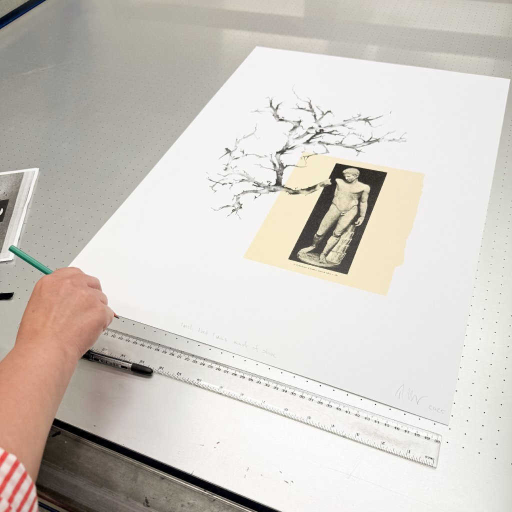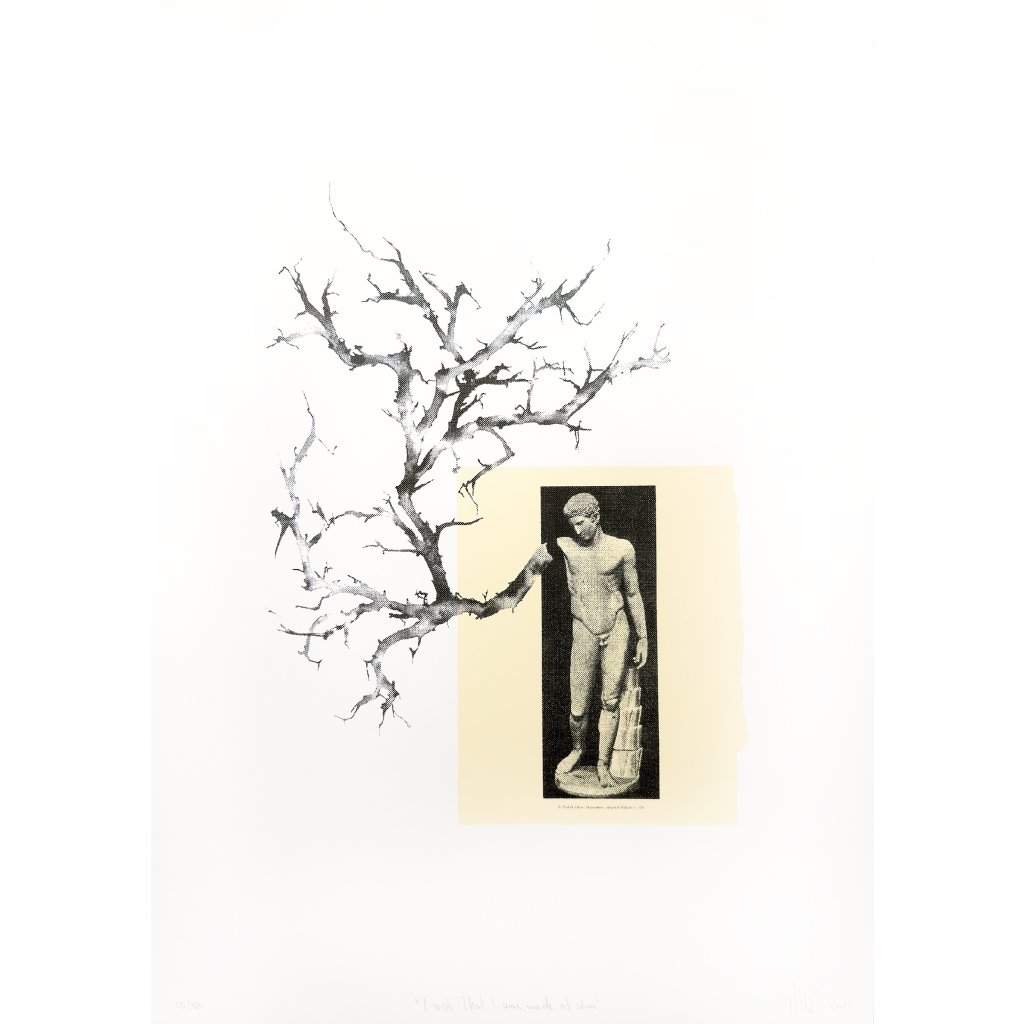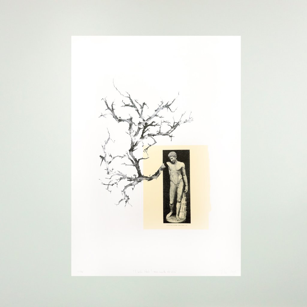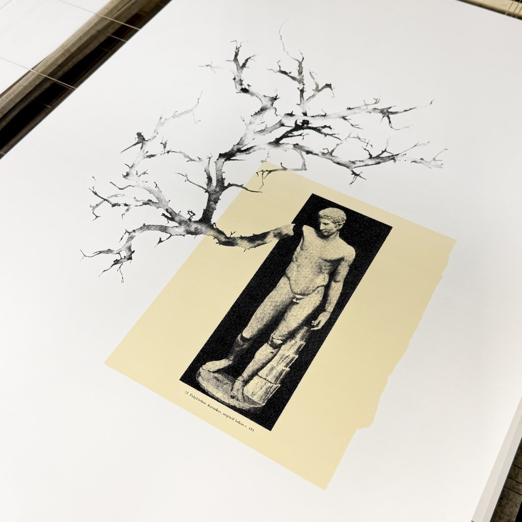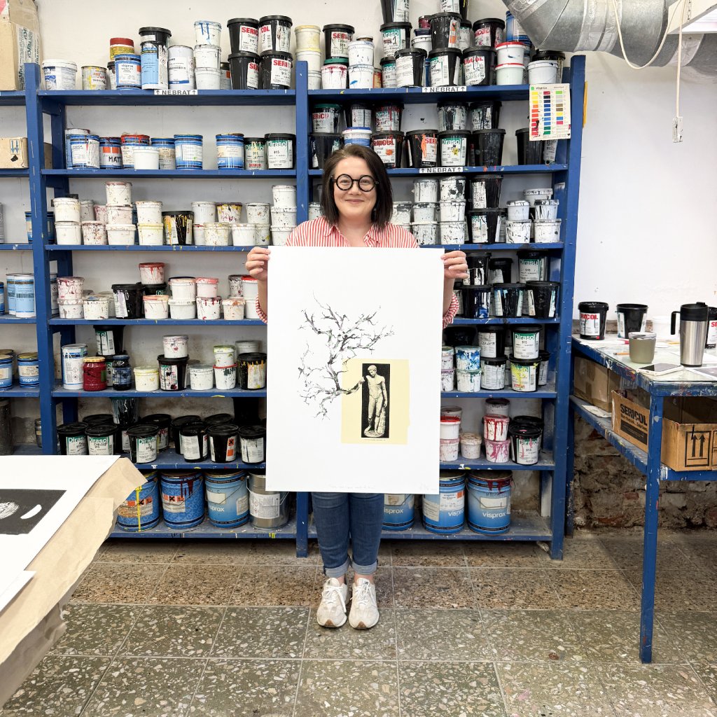 Telegrafika. Unikátní kus umění s opravdovou uměleckou hodnotou můžete mít u sebe doma i vy. Serigrafie slovenské umělkyně Lucie Tallové je inspirována její výstavou Přála bych si být stvořena z kamene. Reflektuje její tvorbu, ve které dominují témata archivu, paměti a vizuálního vrstvení. Autorka pracuje s motivem antické sochy, která je propojena s kresbou větví, což vytváří dílo s poetickou a melancholickou atmosférou.